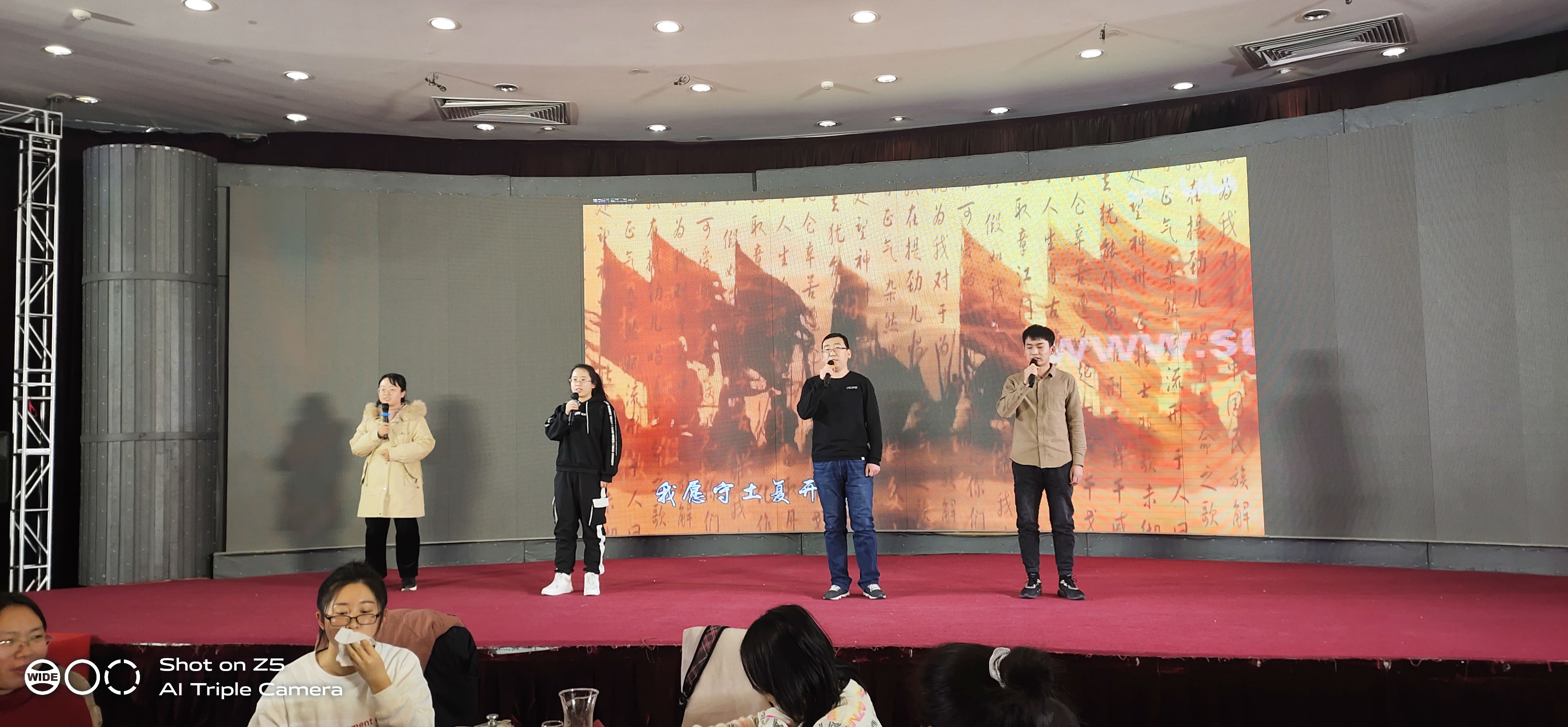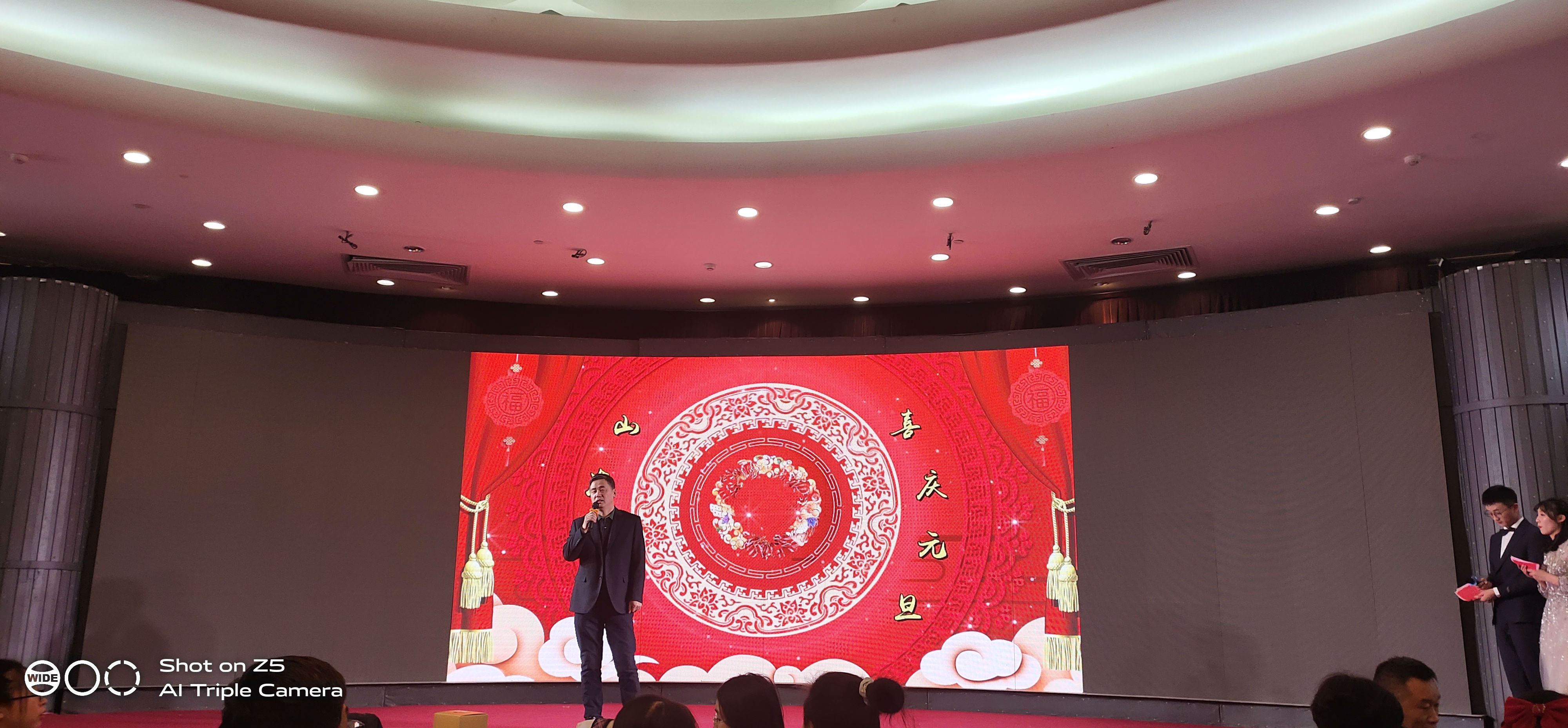 公司兩位年輕員工擔任本次晚會主持人。