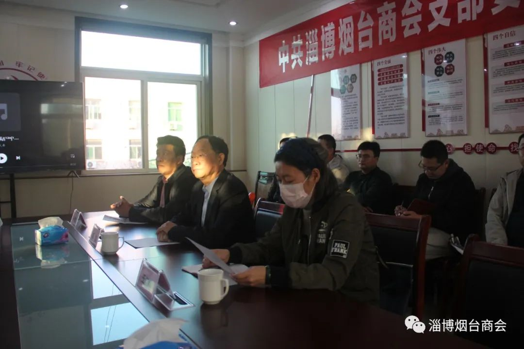 2022年10月18日下午,中國共產(chǎn)黨淄博煙臺商會支部委員會成立大會在淄博煙臺商會會議室隆重召開。中共淄博市工商聯(lián)四級調(diào)研員、非公黨委副書記高峻同志、市非公黨委辦公室主任王佳梅同志到會指導并講話,會議由王剛杰同志主持,淄博煙臺商會全體黨員、顧問和理事會代表20余人參加會議。